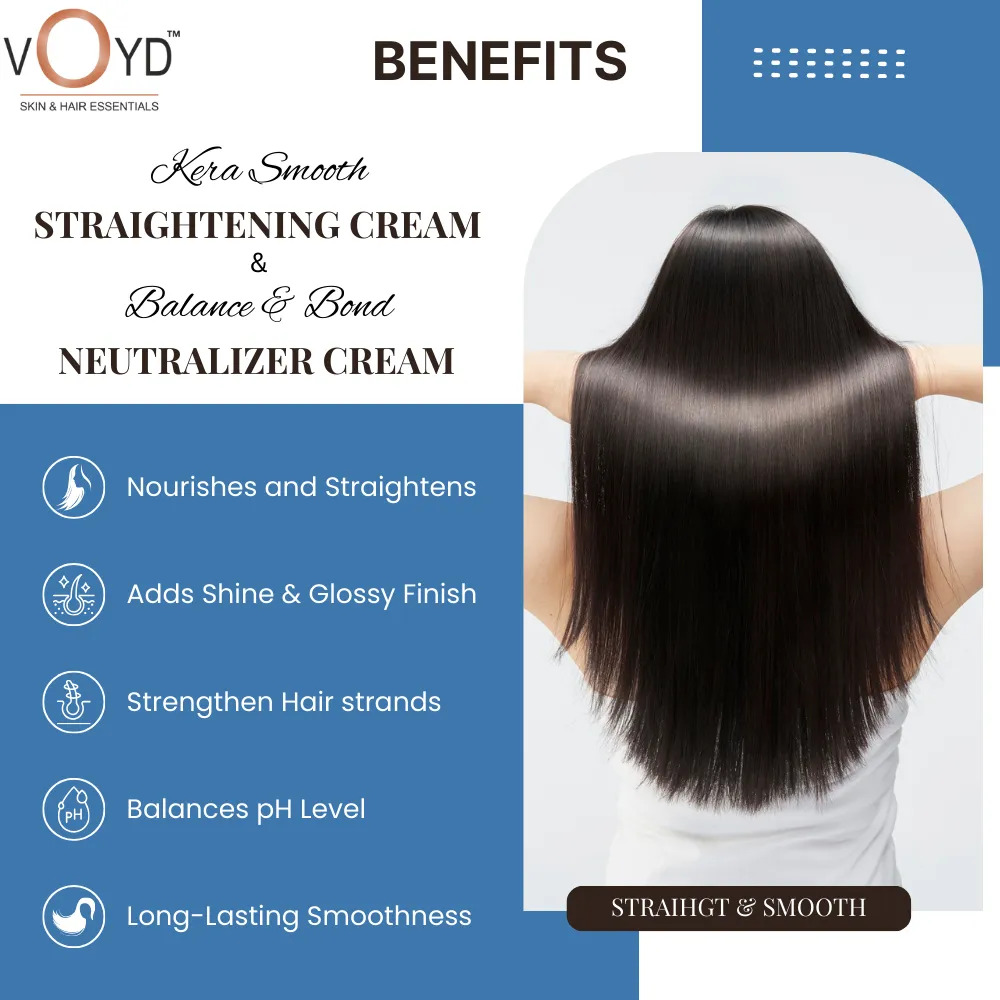 - LOCKS STRAIGHT EFFECT & LONG-LASTING RESULTS – VOYD Balance and Bond Hair Neutralizer Cream helps lock in the straightened effect after chemical treatments. Its advanced formula seals the cuticle layer, ensuring smooth, sleek, and frizz-free hair that lasts longer. By preserving the results of straightening treatments, it keeps hair manageable, silky, and naturally radiant.