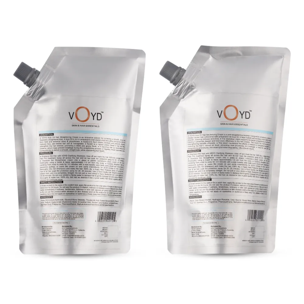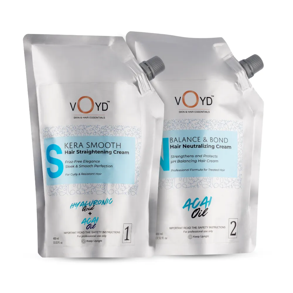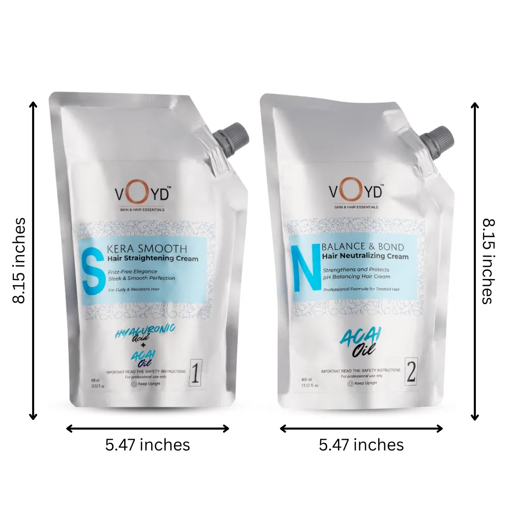 VOYD Acai Oil Hair Straightening Cream and Neutralizer | Permanent Smoothening Cream with Keratin| Restores Strength & Shine | Repair Damaged Hair | pH Balanced | Long-Lasting Smooth Results | For Curly & Resistant Hair | For Men and Women | Free From Paraben & Silicone | Pack of 2 | 400g each