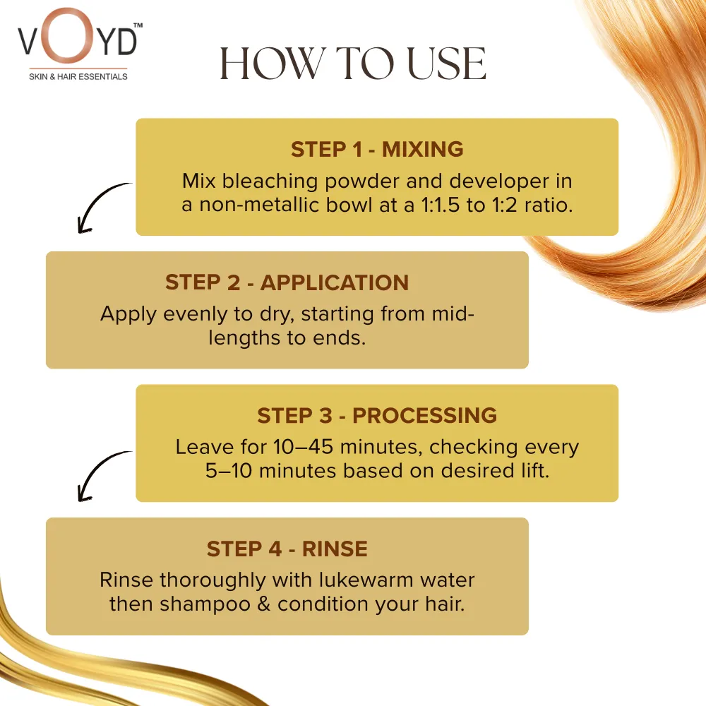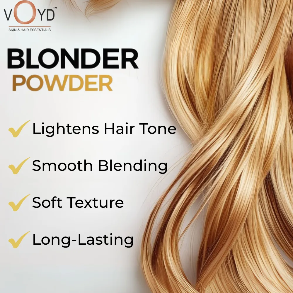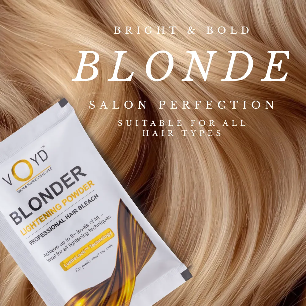 - POWERFUL HAIR LIGHTENING: VOYD Hair Lightening Powder provides up to 9+ levels of lift, allowing you to achieve a wide range of blonde shades—from soft tones to golden blonde color. It ensures even and consistent lighting without patchiness. Whether your goal is subtle highlights or a complete blonde transformation, this product creates a professional, salon-quality base for further coloring or styling.
