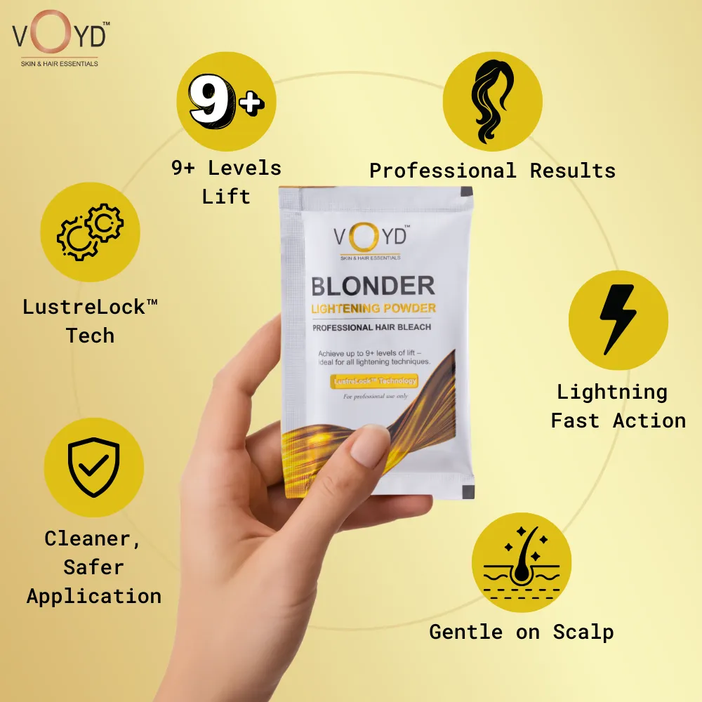 VOYD Blonder Lightening Powder | Professional Hair Bleach | Up to 9+ Levels Lift | Fast & Even Results| Dust-Free | LustreLock Technology | Paraben & Sulfate-Free | For Men & Women | 24 Sachets x 15g