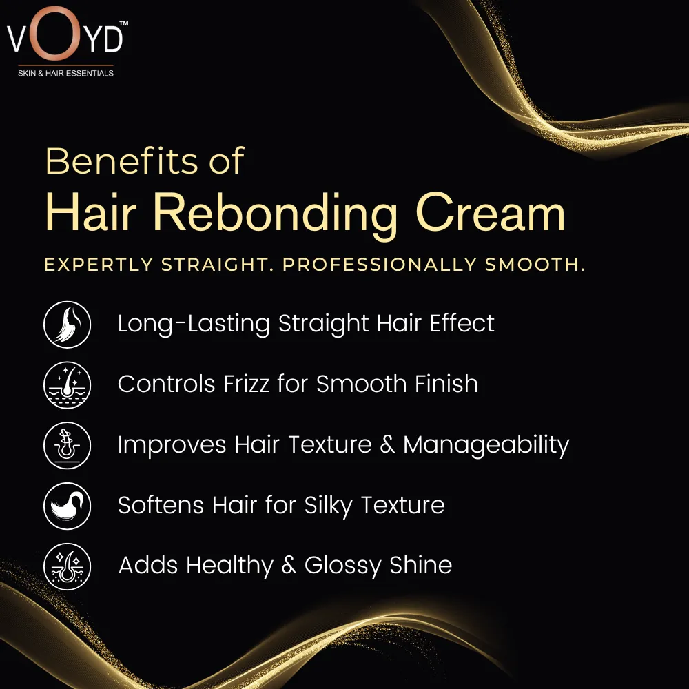 - INTENSE MOISTURE & NOURISHMENT – Enriched with Olive Oil, VOYD Kera Straight Hair Rebonding Cream deeply nourishes and moisturizes hair during the straightening process. It prevents dryness, restores softness, and improves hair manageability. The cream penetrates each strand, delivering long-lasting hydration, smoothness, and frizz control. It keeps hair healthy and vibrant while enhancing natural shine and leaving hair soft, silky, and silky smooth from root to tip.
